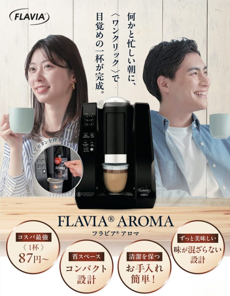 そこでこの記事では、おうちデートの「飲み物問題」を一撃で解決し、あなたの部屋を本格カフェに変えてくれる最強のアイテム「FLAVIA AROMA(フラビア アロマ)」をご紹介します 。
