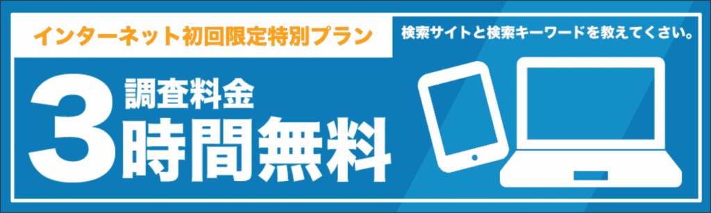 公式HPにて、「初回3時間の無料調査」と記載があります(2025年12月16日時点)。