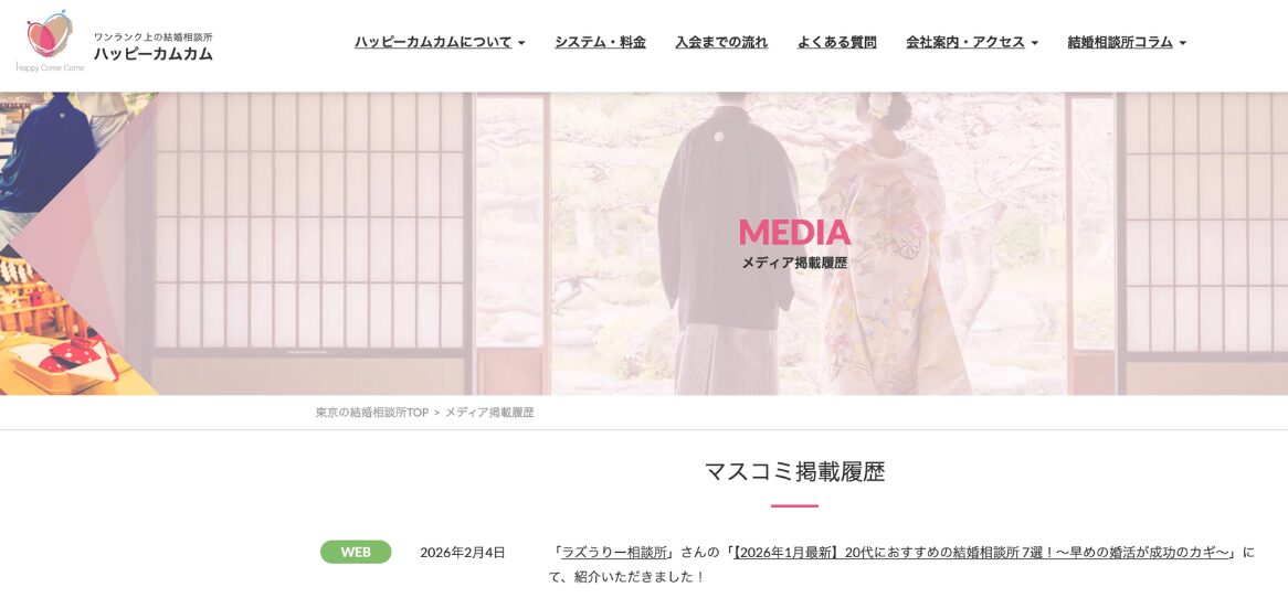 また、結婚相談所「ハッピーカムカム」のHPでも、当サイトを紹介していただきました👇(2026年2月4日)